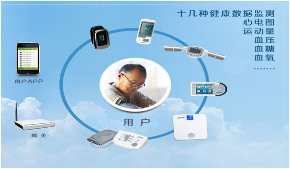 各种医疗终端:血压计、血糖仪、血氧仪、心电仪、脂肪仪、电子体重秤、骨密度仪、智能腕表等。进行心率、睡眠监测,计步等。